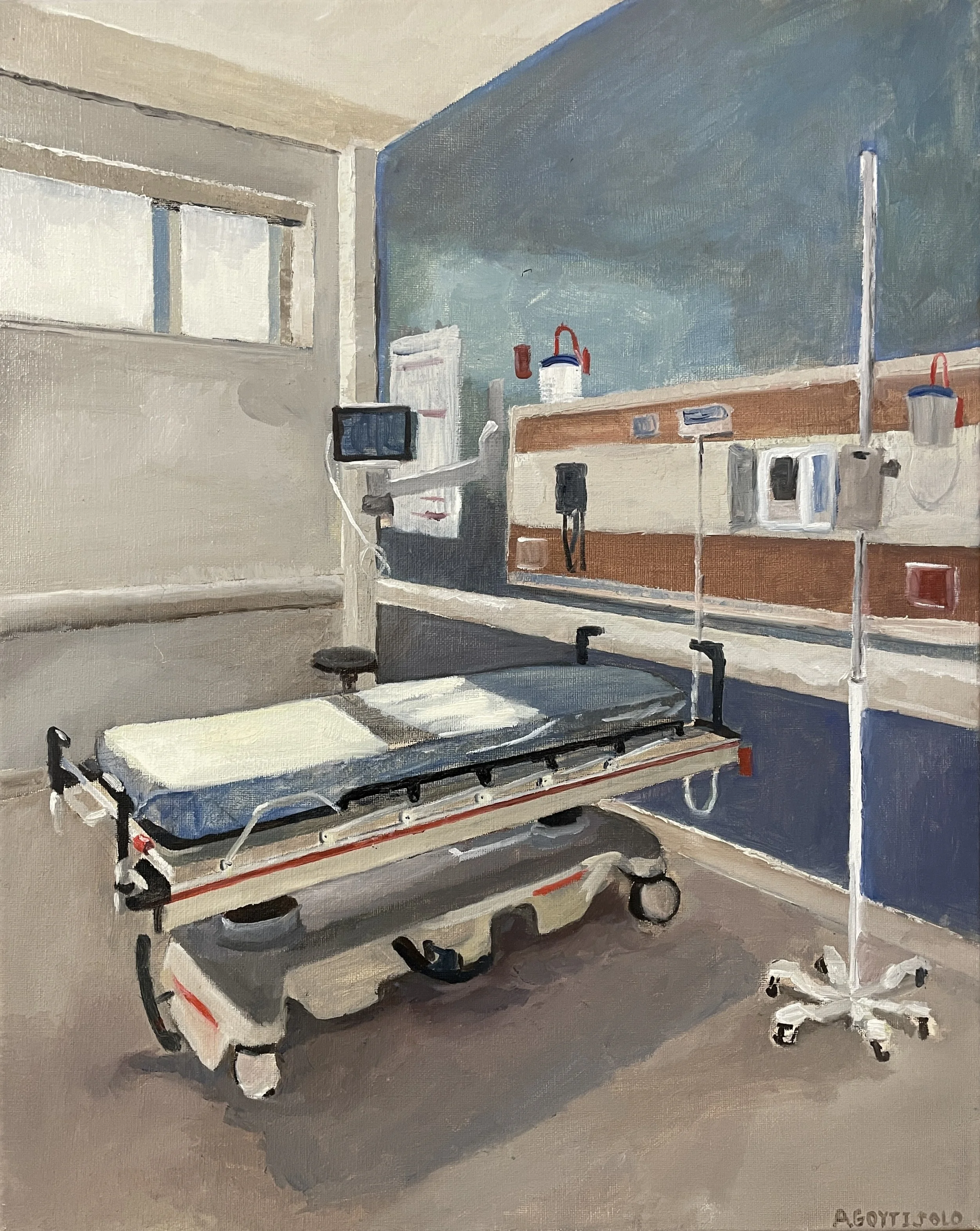 I thought that title really captured the eerie quiet of the image. I like that it appears serene with the sunlight pouring in; juxtaposed against the subject matter per se — an emergency room, which would generally be anything but serene.